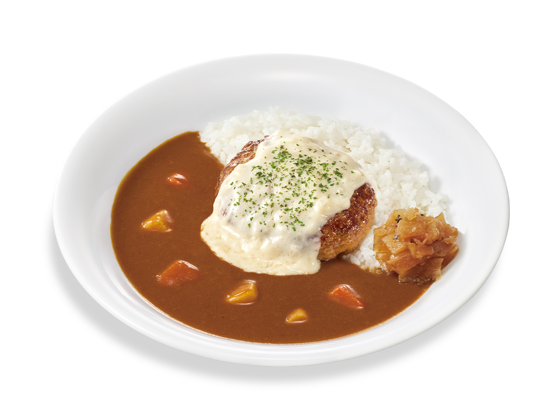 モッツァレラチーズとレッドチェダーチーズを使ったソースを入れた、肉厚な牛と豚の合い挽き肉のハンバーグを、すき家の「カレー」にのせて、ニンニクがほんのり香るホワイトソースをかけた、食べ応えのある商品です。
