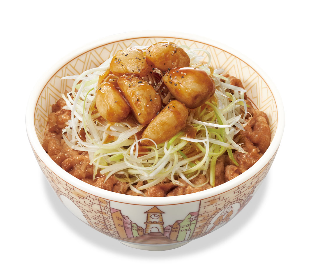 シャキシャキ食感の白髪ねぎと、ほくほくのフライドにんにくをトッピングした牛丼に、ごま油香るすき家特製の旨塩だれをかけ、アクセントにブラックペッパーを振りかけた商品です。