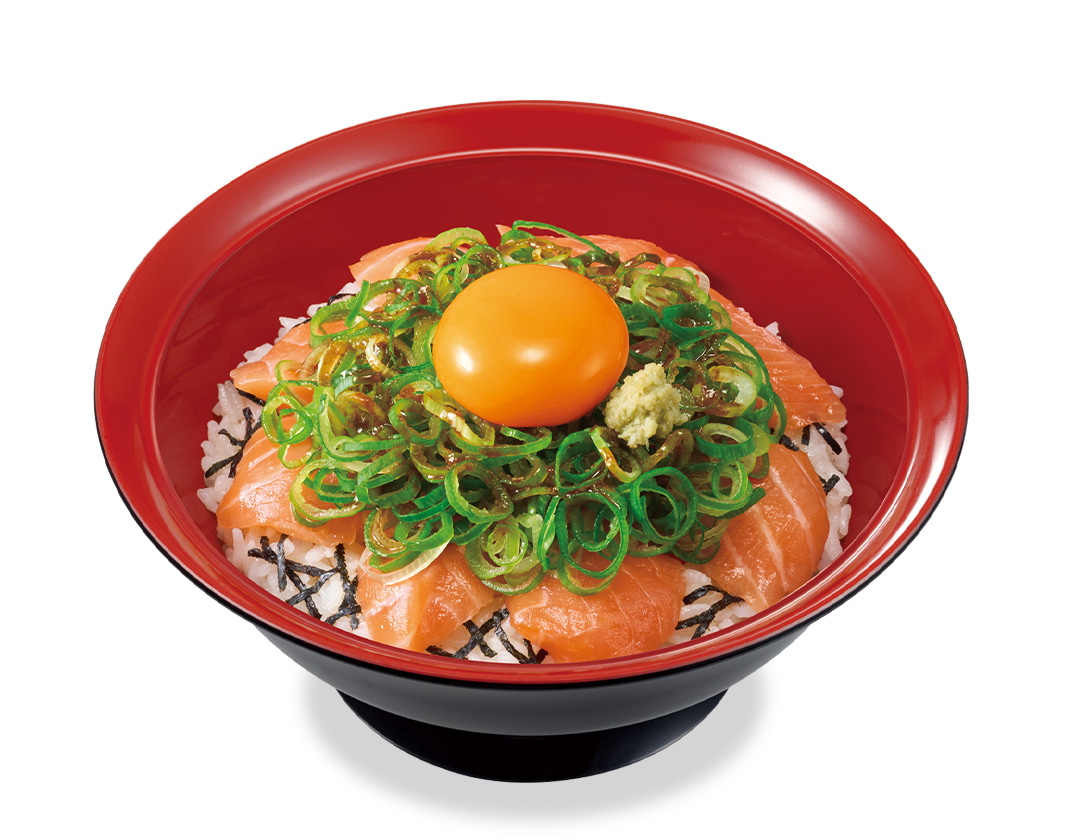 国産米100%のごはんに、脂のりの良いノルウェー産アトランティックサーモンの切り身とたっぷりの青ねぎを盛り付け、コチュジャンだれをかけた商品です。たまごをのせてまろやかな味わいも楽しめます。