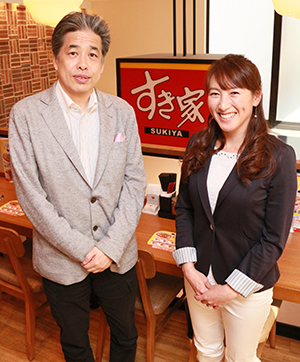 今回はFC東京のクラブカラーである青赤で彩られたすき家飛田給店で、「うな牛」を召し上がりながらの対談です。