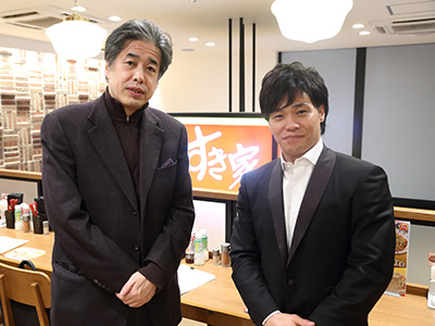 牛すき鍋定食をお召し上がりになりながらの対談です。