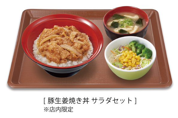 また、豚生姜焼き丼にサラダとみそ汁が付いた「サラダセット(+190円)」もおすすめです。